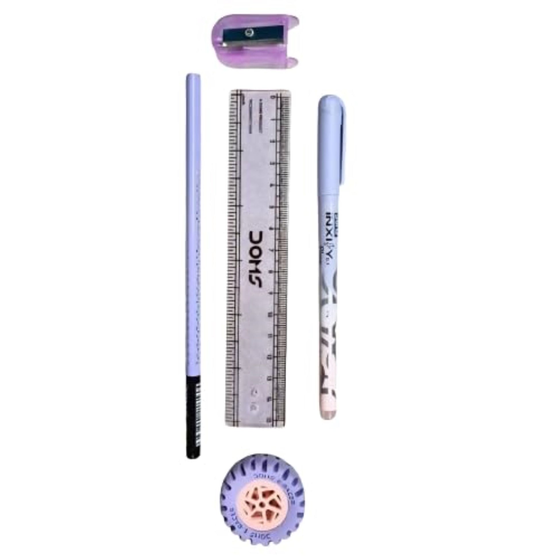 With items like the Inxify Plus Blue Ball Pen, 15 cm Scale, Triangular Extra Dark Wooden Pencil, and Long Point Sharpener (and more essentials), this kit is ideal for school bags, exam kits, and daily classroom use.