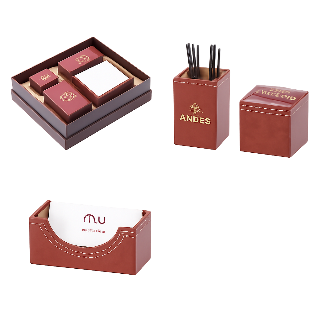 Crafted with quality materials and a sleek finish, this desk set keeps your workspace organized while adding a touch of sophistication. Ideal for office desks, home offices, conferences, employee welcome kits, and business gifts.