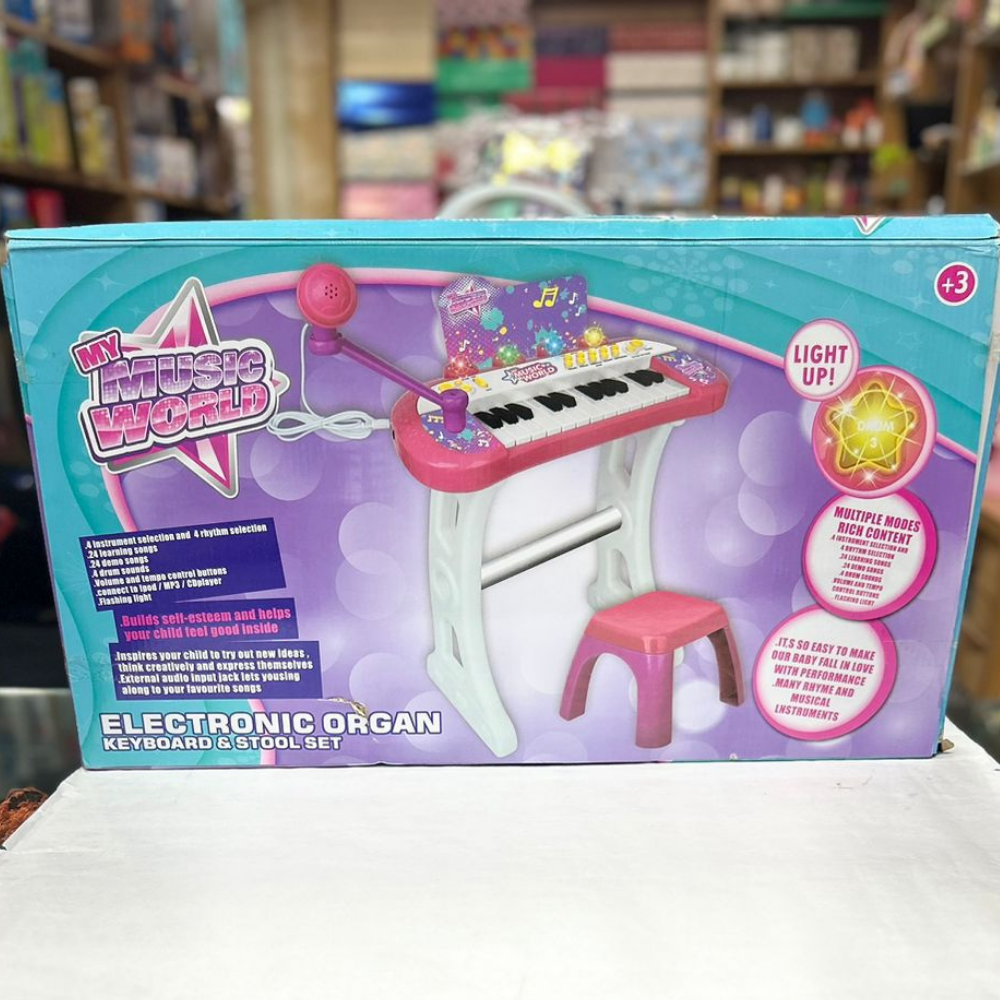 Give your child the gift of music. Learning a musical instrument as a child provides lasting benefits to the development of their social, academic and physical skills. Our electronic keyboards provide the perfect introduction to music for your growing child. Watch as they sing, tap and discover a new talent, one that can bring discipline, practice and even a boost to their self-esteem. With 37-keys, this children's electronic keyboard is programmed with a series of demo songs to kick-start your child's learning. The range of light and Colour effects, along with fun tunes and sound prompts, combines visual and auditory learning cues to excite your child's senses, and assist them in learning the keyboard in a relaxing, highly interactive way. Our children's electronic keyboards come with everything your child needs to jump straight into practice, with a stool, stand and microphone pre-packaged to ensure they get the full, rich experience of beginning a new instrument. The keyboard comes fitted with a 'sing-a-long' microphone with recording and playback functions, allowing them to enjoy the results of what they are creating, as they create it. Our electronic keyboards let your child learn and discover music in their own way.